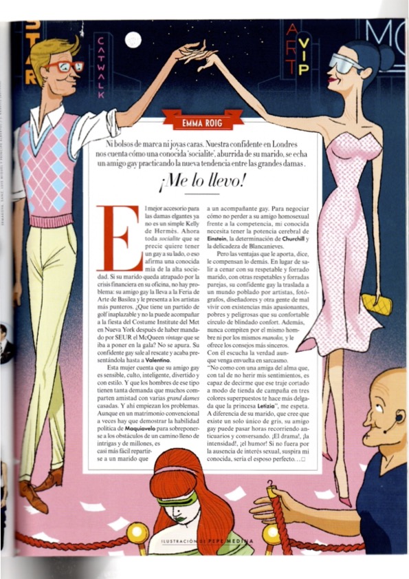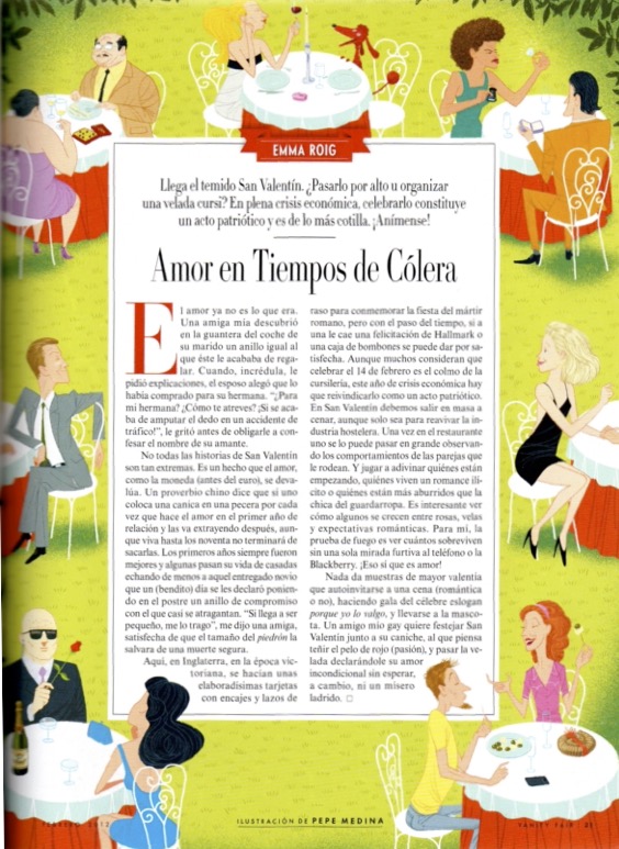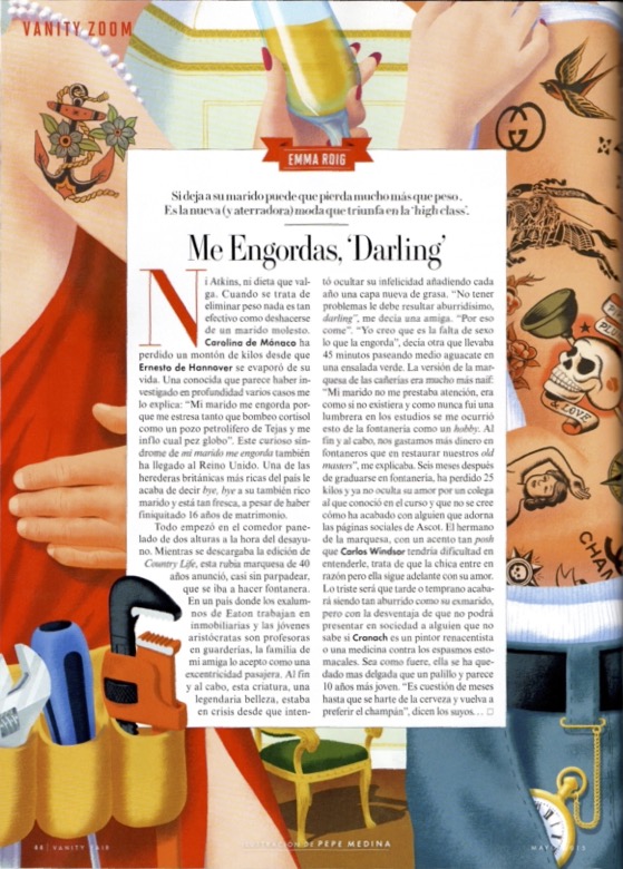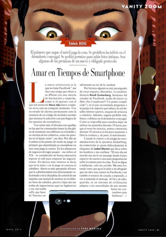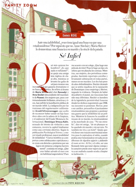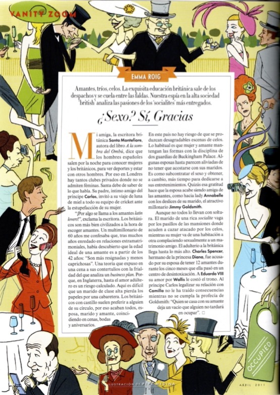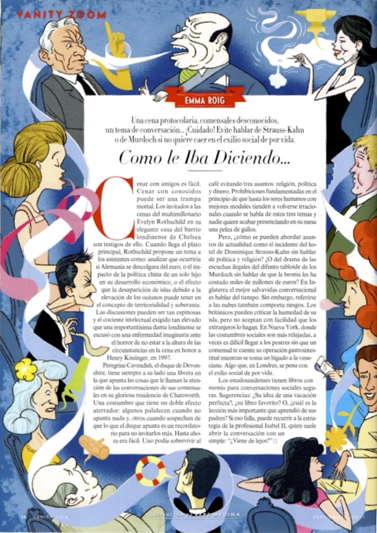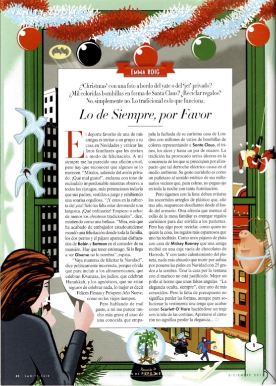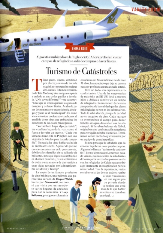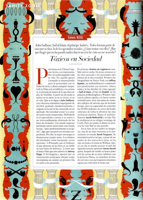 Emma Roig Askari wrote a regular column, Vanity Zoom, for Vanity Fair España from 2011-2016, providing social commentary on current affairs.